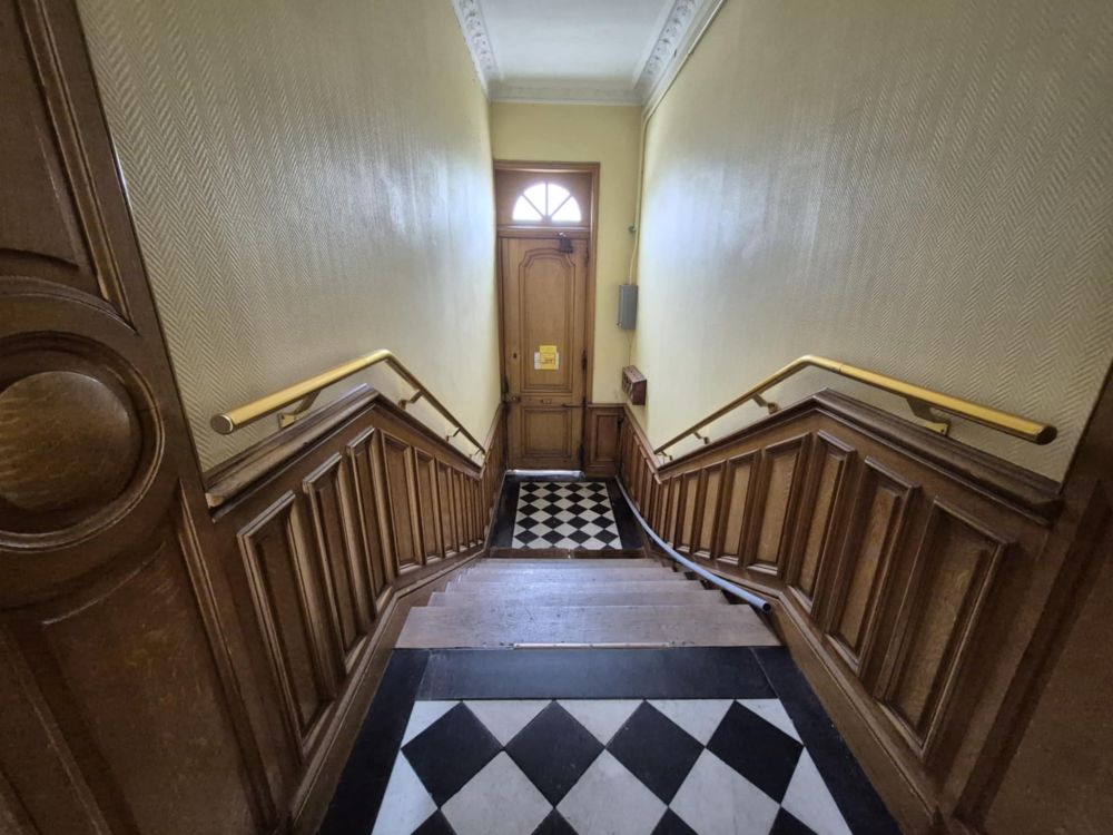 Dans bel immeuble de caractère, appartement F3 d'environ 74m² habitables comprenant: entrée, séjour, cuisine, 2 chambres, SDD, WC, cave.