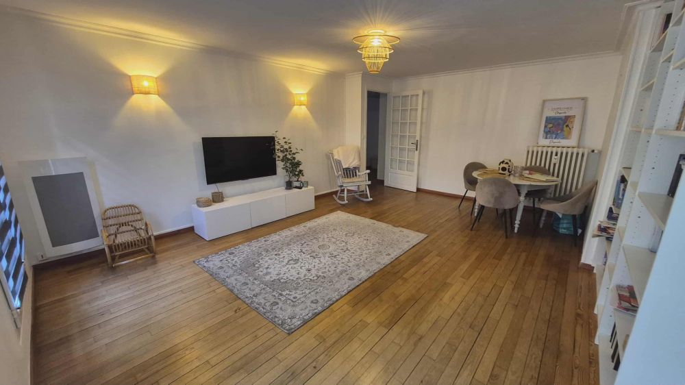 Dans immeuble Perret, appartement F3 d'envrion 87 m² habitables comprenant: entrée avec rangements, cuisine aménagée 8m², séjour 31 m², 2 belles chambres, SDB, WC, cave, parkng collectif