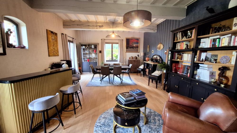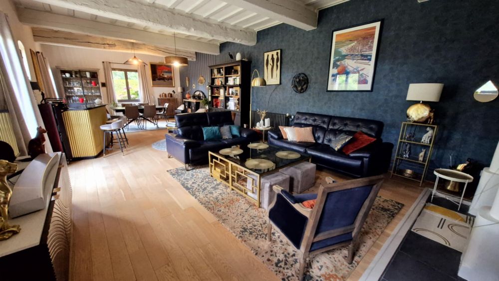 Ancienne grange entièrement rénovée et décorée avec goût d'envrion 160 m² habitables sur 4350 m² de terrain clos et arboré comprenant: belle entrée avec rangements, pièce de vie avec cheminée 60 m², cuisine aménagée, 4 belles chambres dont une avec douche, SDB, buanderie, grand garage, terrasses d'été et d'hiver, dépendance/ bureau idépendant (idéal profession libérale).